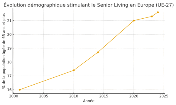 La transformation démographique, sociale et économique entraîne un changement de paradigme dans la manière de concevoir l’habitat des seniors. Le Senior Living est devenu à la fois un besoin réel et un marché en pleine expansion.